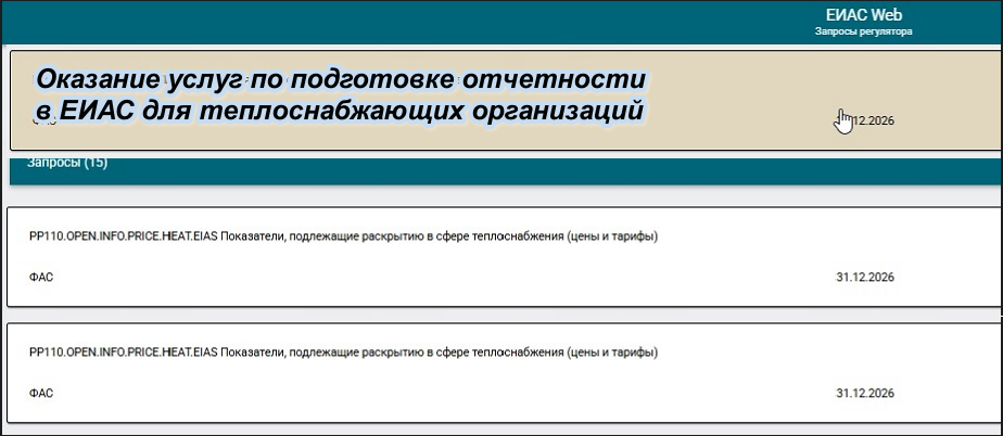 Оказание услуг по сопровождению в ЕИАС для теплоснабжающих предприятий