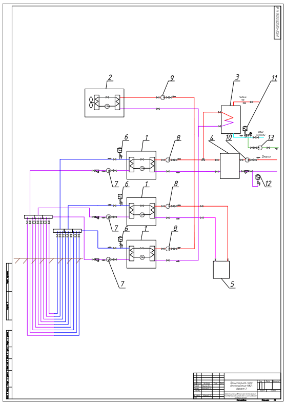 Принципиальная схема теплоснабжения многоквартирного жилого дома, вариант №3 (формат А1, pdf)