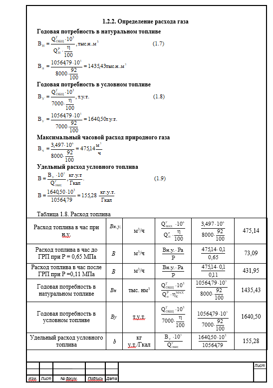 1.2. Определение необходимого расхода газа. Схема наружного газопровода высокого давления
