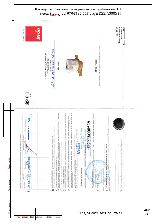 Состав документации на узел учета холодной воды: